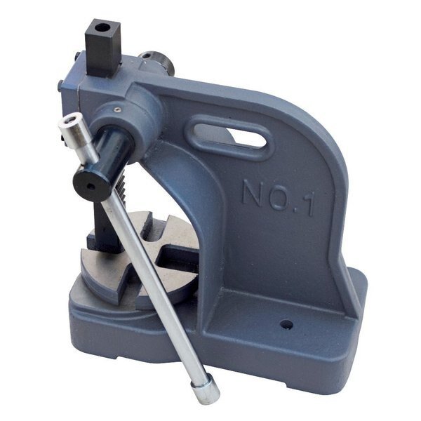 1 Ton Pro-Series Arbor Press ~ For riveting, squeezing, punching, bending, and other pressing applications. ~ Base is drilled for mounting on a bench or pedestal. ~ Sturdy, cast-iron construction. ~ Removable machined steel anvil provides accurate work suppport in four slot positions. ~ Rugged steel ram is driven by a machined pinion. ~ Punches or tools may be added to the end of the ram with the aid of a magnetic insert.