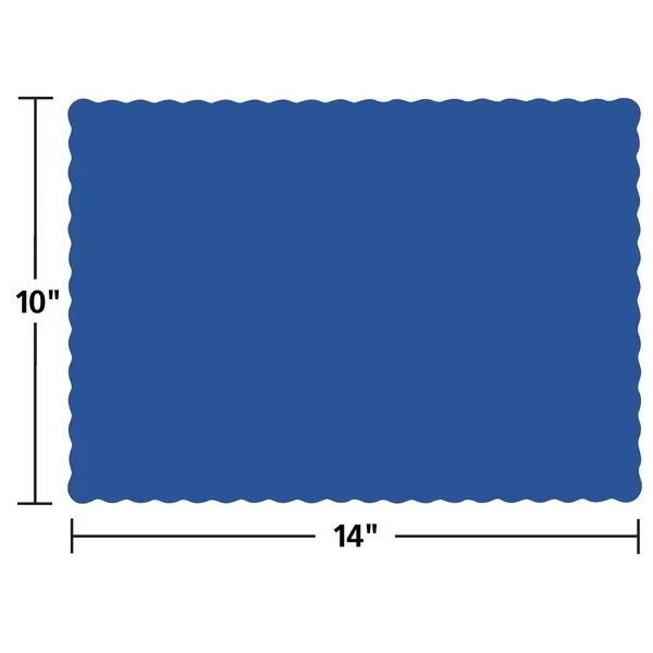 Channel a nautical and elegant look at your event or eatery with help from these Scalloped Navy Blue Paper Placemats. Measuring 10" x 14", these placemats feature a deep, navy blue hue and an elegant scalloped edge. Placemats will help you protect your tabletops from spills and messes while adding style and making cleanup a breeze. Scalloped Navy Blue Paper Placemats are conveniently sold 1,000 per case.
