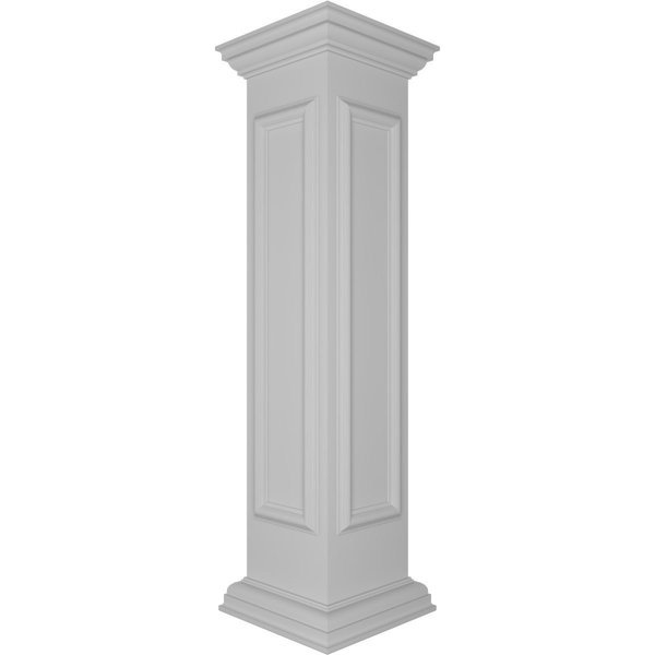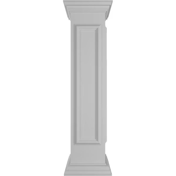 10"W x 48"H Corner Newel Post with Panel, Flat Capital & Base Trim (Installation kit included), Ekena Millwork, Mfr#: NWL10X48CPF0B0