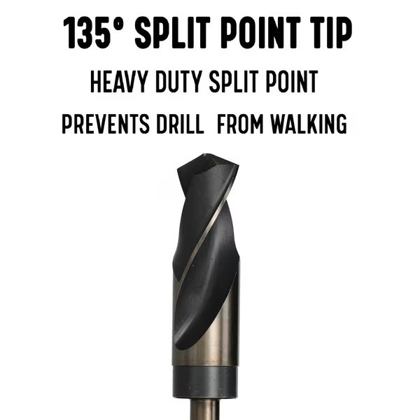 Contractor grade drill bit manufactured from M1 High Speed Steel. For use in a wide range of materials in the iron and steel families such aluminum, iron, steel and other metal drilling. 135 degree split point tip for self-centering and reducing thrust. Compared to a conventional 118 degree tip, these drills wont go "walking" on you. 3-Flat shank creates an extra secure hold in your chuck. Common flute and overall length for minimal adjustment during tool changes 3" Flute Length, 6" Overall Length, 1/2" Shank