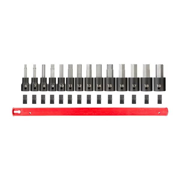 1/2 Inch Drive Hex Impact Bit Socket Set with Rail, 14-Piece (6-19 mm), Tekton, Mfr#: SIB92101