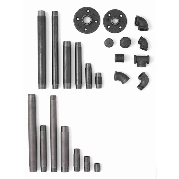 Complete Any DIY Project Like a Pro and Showcase Your Creativity with the Best Shelving Accessories by Ironwerks Designs. Whether you are planning your next DIY home-shelving project, designing stylish furniture, or need to secure your home plumbing pipework from leaks, these Ironwerks Designs elbow-fitting pipes are just what you need to complete your project like a true professional. Made of malleable, threaded, unfinished cast iron for premium durability and strength that will stand the test of time. Perfect for a variety of styles including Industrial, steampunk lighting, French country farmhouse, retro, vintage, and more. This kit includes everything you need to make your customized table. Just choose any type of wood top. Reclaimed, custom-made, oak, walnut, butcher block or anything else that suits your needs. This is suitable for most home improvement projects. We can help you build tables, chairs, shelves, lighting fixtures, and custom furniture or artwork!
