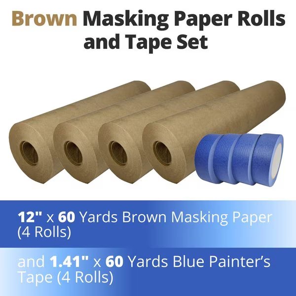 IDL Packaging Masking Kit includes: 4 Rolls of GP Masking Paper, 12 inches x 60 yards; 4 Rolls of Painter's Tape, 1.41 inches x 60 yards.Masking paper for painting is a type of kraft paper, which has a strong resistance to moisture exposure. It is used to cover areas from water-based materials such as paint, solvent, and others. It is good to use painter's tape along with masking paper to protect your surfaces.Painter's tapes are an extremely useful piece of equipment used in stencil painting, carpentry work, and a wide range of other applications. This tape is excellent for adhering masking paper to any surface.Sure, you can only use paper rolls for surface protection. But, for paper securing results, you should use painter's tape as well. To easily cover a large area use the TH-120 Hand Masking Paper/Tape Dispenser. It simplifies all operations and helps to get the dreary work done without extra effort. To make your purchase easy, we collected the most popular kits of masking products. You can choose any of them suits your project.Thank you for choosing our products and good luck with your project!