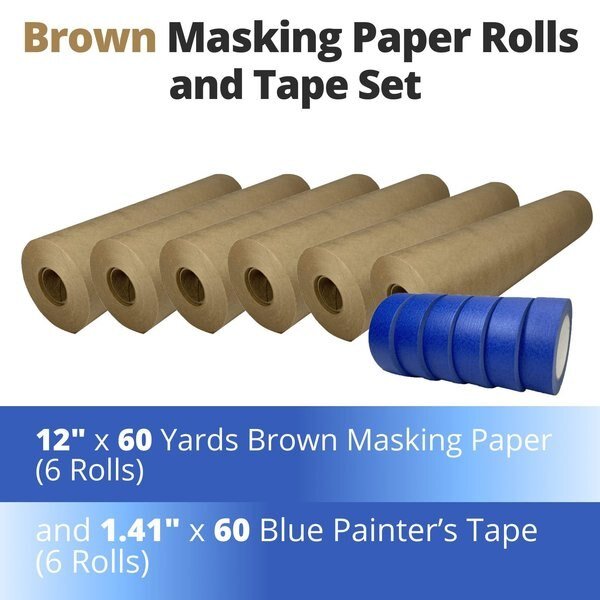 IDL Packaging Masking Kit includes: 6 Rolls of GP Masking Paper, 12 inches x 60 yards; 6 Rolls of Painter's Tape, 1.41 inches x 60 yards.Masking paper for painting is a type of kraft paper, which has a strong resistance to moisture exposure. It is used to cover areas from water-based materials such as paint, solvent, and others. It is good to use painter's tape along with masking paper to protect your surfaces.Painter's tapes are an extremely useful piece of equipment used in stencil painting, carpentry work, and a wide range of other applications. This tape is excellent for adhering masking paper to any surface.Sure, you can only use paper rolls for surface protection. But, for the paper securing results, you should use painter's tape as well. To easily cover a large area use the TH-120 Hand Masking Paper/Tape Dispenser. It simplifies all operations and helps to get the dreary work done without extra effort. To make your purchase easy, we collected the most popular kits of masking products. You can choose any of them suits your project.Thank you for choosing our products and good luck with your project!