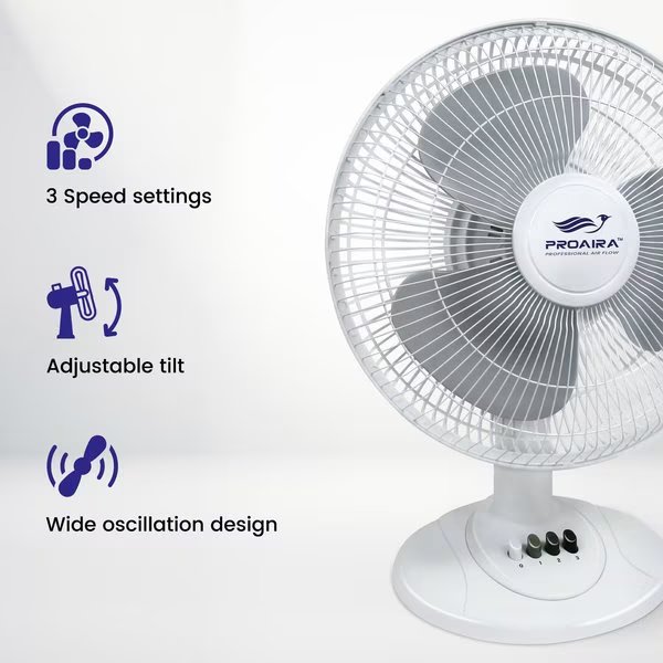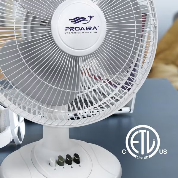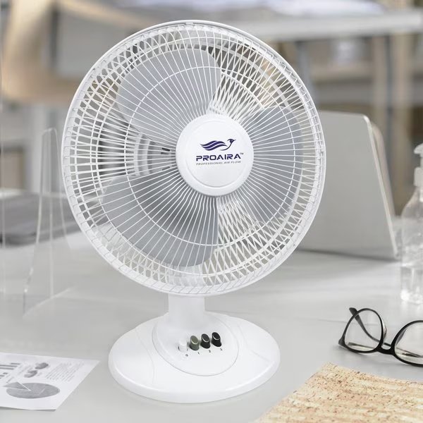 12-inch Oscillating Table Fan w/Adjustable Tilt, 3 Speed Control, White, Proaira, Mfr#: DF12W