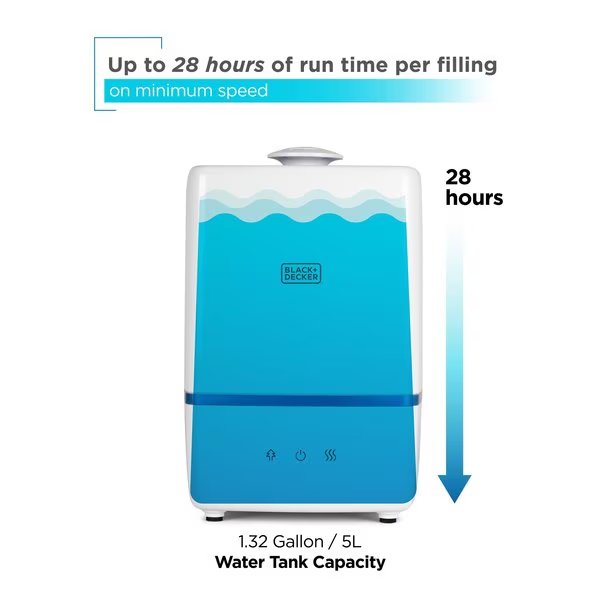 1.32 Gallon Ultrasonic Warm & Cool Mist Humidifier, Black & Decker, Mfr#: BUHW50