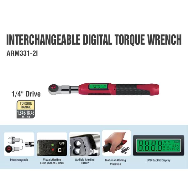 1/4" INTERCHANGEABLE Digital Torque Wrench, 1.8 to 22 ft-lbs, Acdelco, Mfr#: ARM331-2i