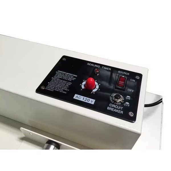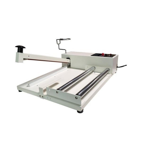 The sealers are equipped with a round wire for cut and seal or flat if ordering the IC units. Depending on the model of the unit, film up to 34" and 0.025mm (100 gauge) thickness can be used. All sealers are of steel construction including the work base for quality and durability. Additional features include a timer, heat gun holder, film, roller, film separator and sliding cutter (IC-Series).