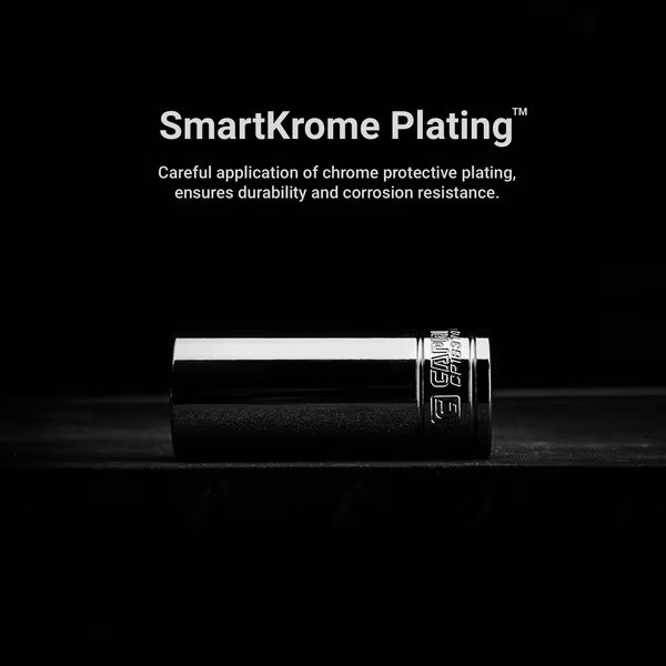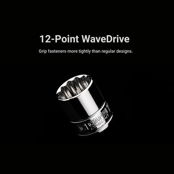 Capri Tools high performance sockets are trusted by professionals for even the most demanding applications. We use premium Chrome Vanadium steel tempered with our proprietary heat treatment process to make these sockets and drivers. They are durable and withstand more torque. Each socket underwent careful polishing and protective plating process to achieve our own SmartKrome finish. The precise 12-point WaveDrive design grips fasteners more tightly than traditional design, preventing fastener rounding and giving you more leverage.