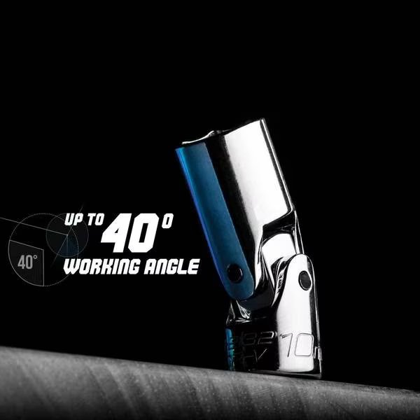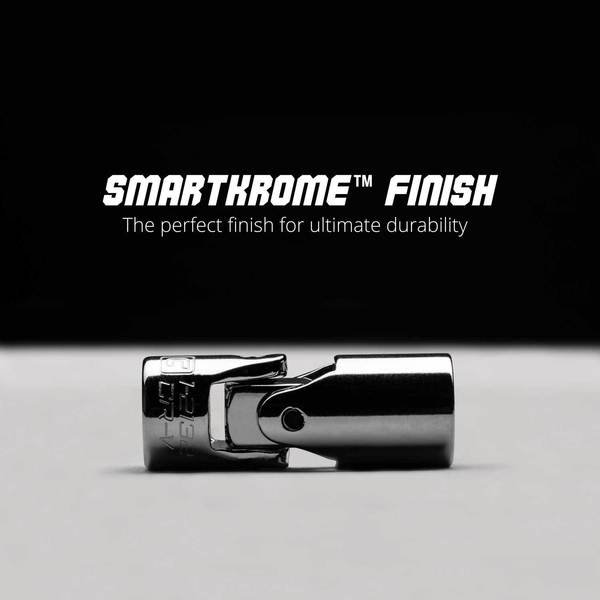 The Capri Tools 1/4 in. Drive Universal Sockets have a 40-degree working angle and rotate smoothly in 360 degrees. They give you the ultimate accessibility to fasteners in tight spots. Made with premium Chrome Vanadium steel and tempered with our proprietary heat treatment process, they withstand more torque. Our own SmartKrome plating not only gives the sockets the perfect polished look and feel, it's enhances their durability and corrosion resistance. Stamped sizing is permanent and does not fade over time. The 6-point WaveDrive design grips fasteners more tightly than traditional design, preventing fastener rounding and giving you more leverage. Meets and exceeds ASME B107.110 standards.