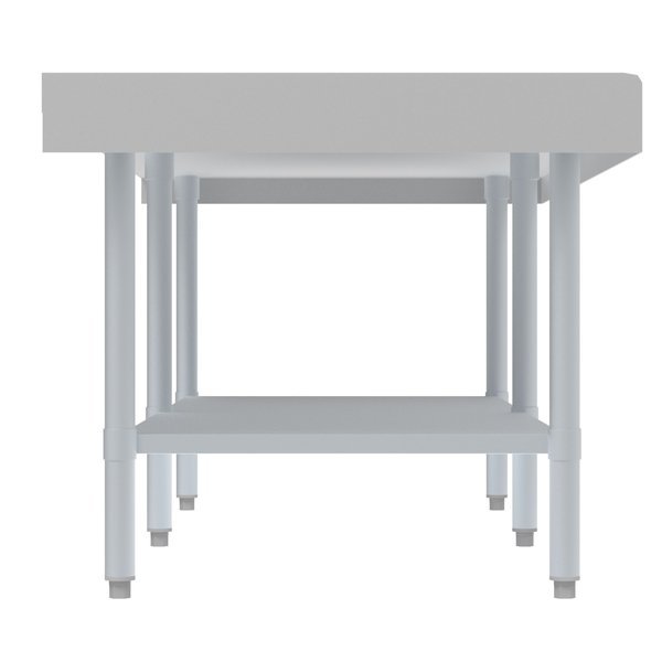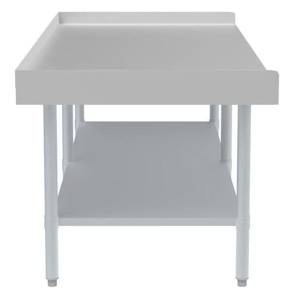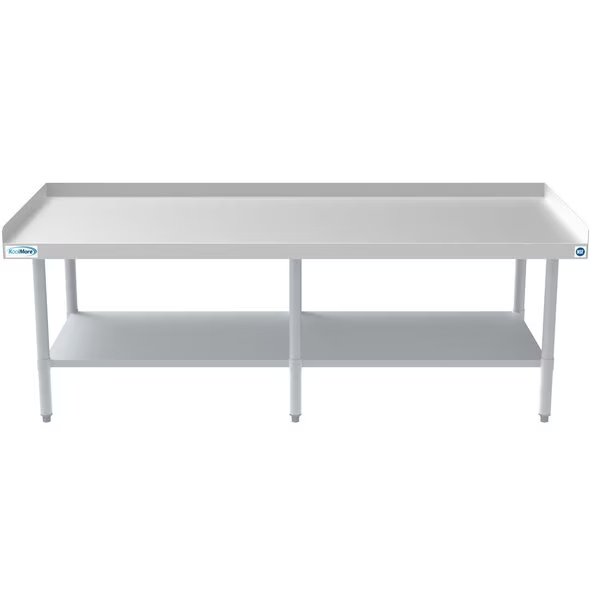 The KooMore equipment stand is built with 16 gauge heavy duty stainless steel it is durable and sturdy and has a weight capacity of 950 Lbs. It can accommodate all types of commercial equipment from griddles to ice machines, charbroilers beverage dispensers, slushy machines, Espresso machines, and even a tabletop pizza oven. The galvanized steel undershelf has a weight capacity of 680 Lbs. and is extremely useful for keeping supplies or ingredients at arm’s reach, it is also adjustable so that you can raise or lower it depending or your particular needs.NSF certification means this table can safely be used in all types of commercial kitchens. Adjustable bullet feet ensure the best possible stability for your valuable equipment. The 2-inch edging will protect your equipment and supplies from slipping off the table, the stainless steel look is super sleek and easy to clean. Overall dimensions 72”L x 30”W x 24