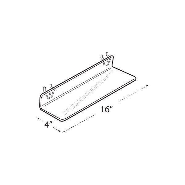 16"W x 4"D Clear Acrylic Shelf for Pegboard and Slatwall, PK4, Azar Displays, Mfr#: 556016