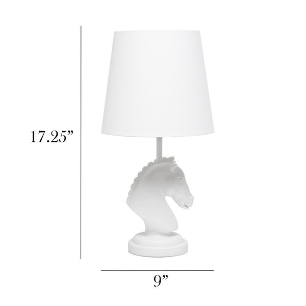 1725 Polyresin Decorative Chess Horse Shaped Bedside Table Lamp with White Tapered Shade, White, Simple Designs, Mfr#: LT1089-WHT