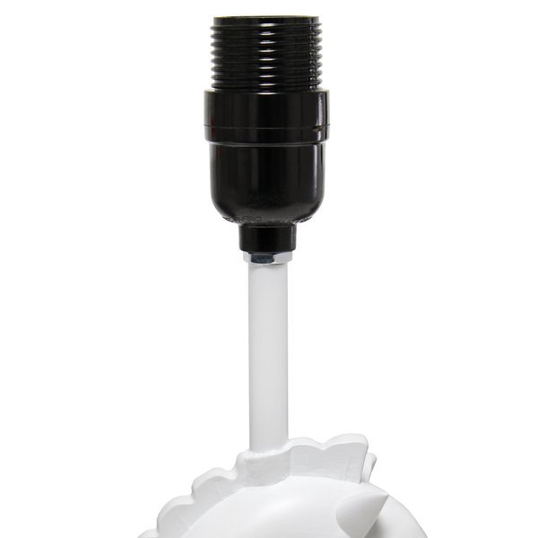 - •ACCESSIBLE SWITCH: An easily accessible gear (rotary) switch is located on the cord of this table lamp to allow a quick and easy on/off function as needed. Lamp is also equipped with a 5 foot white plug in cord rooted at the base, perfect for spaces that need a little room between the outlet and desired location of the lamp.