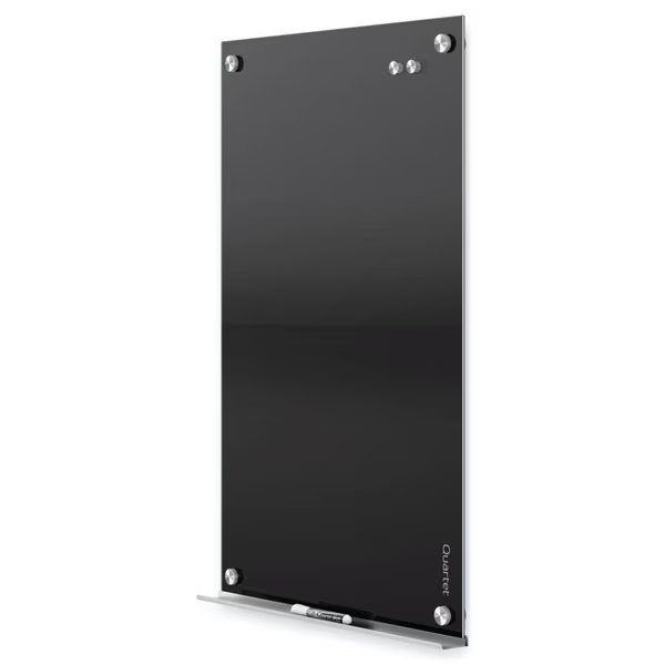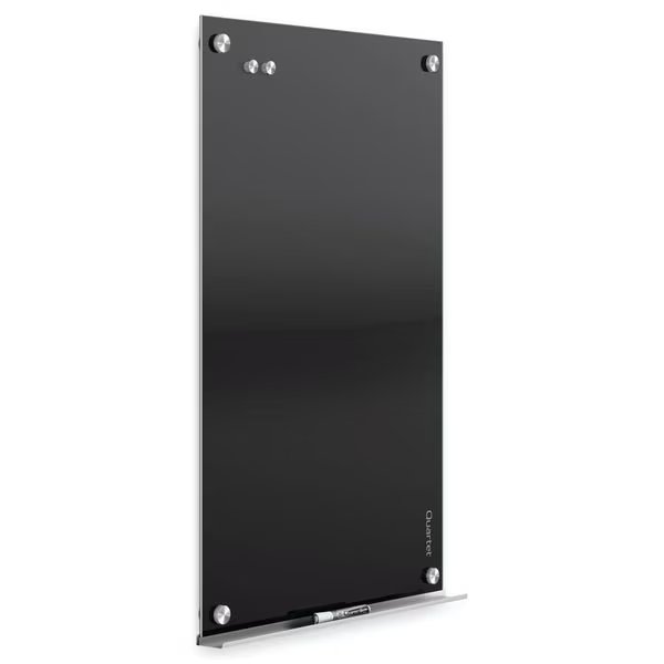 Dry Erase Board, Board Properties Magnetic, Mounting/Mobility Type Wall Mounted, Board Color Black, Dry Erase Height 18 in, Dry Erase Width 24 in, Depth 1 15/16 in, Dry Erase Surface Finish Gloss, Adjustable Height Range Not Adjustable, Frame Color Not Applicable, Board Frame Material No Frame, Frame Material Not Applicable, Dry Erase Surface Type Glass, Corner Shape Square, Includes Accessories, Tray, Magnets, Marker, Standards UL GREENGUARD Gold Certification