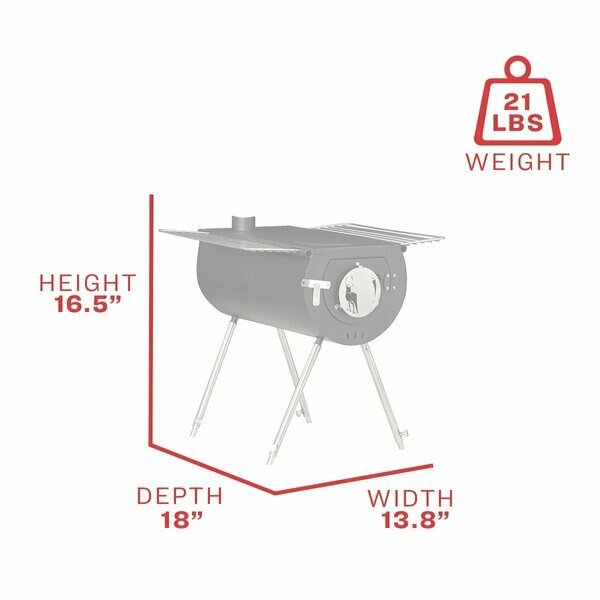 US Stove Company’s Caribou Camp Stoves were developed to bring our home heating knowledge to the outdoors. Designed with the necessary features to be the addition to any expedition gear. The Caribou Outfitter is lightweight and easy to pack allowing it to go anywhere you need to keep you warm. In areas where open fires are not permitted this portable stove could be a handy item to have. Each stove comes packed neatly in a non-rattle carry case with all 6 feet of the chimney pipe, legs and racks making them extremely portable. The ample 137.6 sq. in. cooking surface allows for plenty of room to cook a meal for your group and the included 2 racks are great for drying gloves, socks, and other small items after a soggy hike. The racks also allow for indirect heat cooking of baked potatoes, foil wrapped meats, and also fold up to be used as an easy to carry handle. The included legs have extendable feet to allow for use on uneven surfaces. The Caribou Outfitter model is perfect for small to medium sized tent installations yet weighs only 20.7 pounds making it a welcome addition to any gear set. The Caribou Outfitter stove also makes a great gift idea for your favorite camper, fisherman (great for ice-fishing), hunter, or lover of wood-burning stoves.