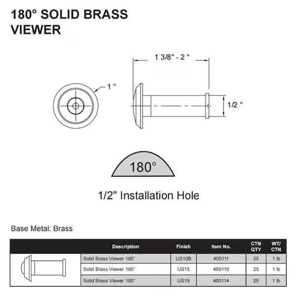 180 DEGREE DOOR VIEWER US15, Delaney Hardware, Mfr#: 400119