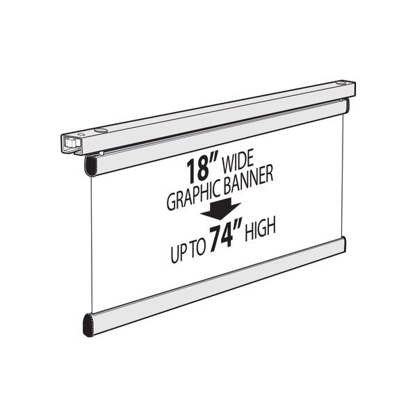 Banner arm with Poster fastener set that allows for easy change of poster 18"W up to 74"H.