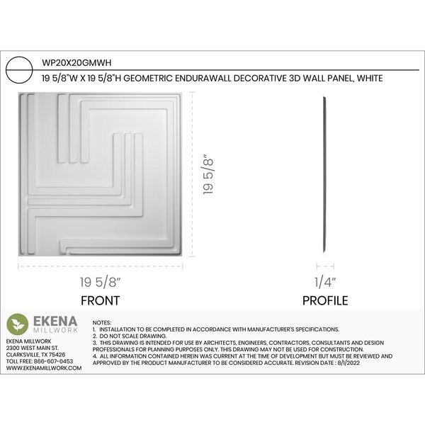 19 5/8in. W x 19 5/8in. H Geometric EnduraWall Decorative 3D Wall Panel, White, 10PK, Ekena Millwork, Mfr#: WP20X20GMWH-CASE-10