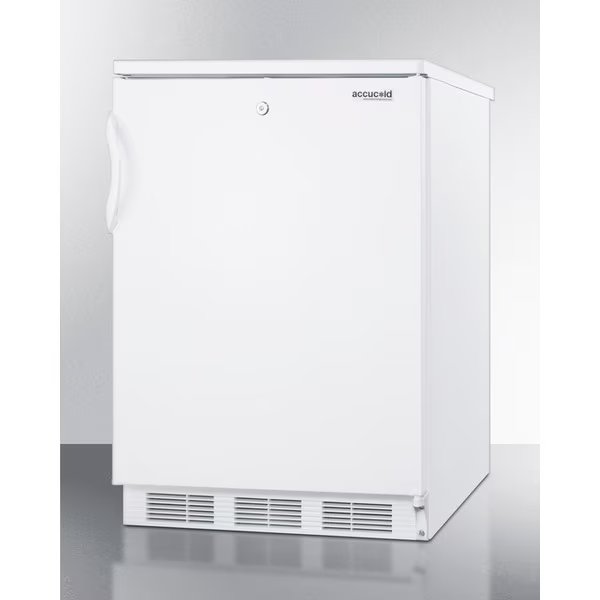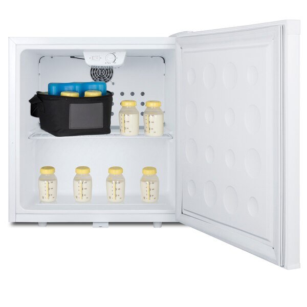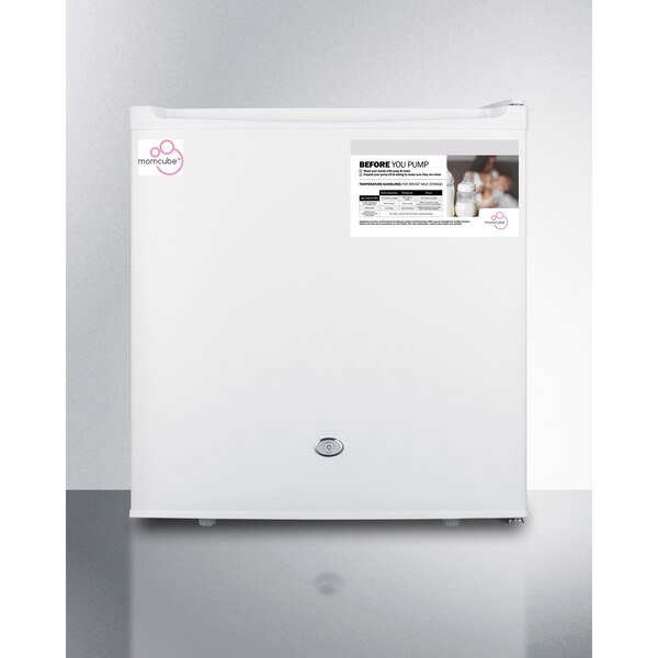 Compact 1.7 cu.ft. all-refrigerator for breast milk storage in white with automatic defrost, front lock, and flat door liner