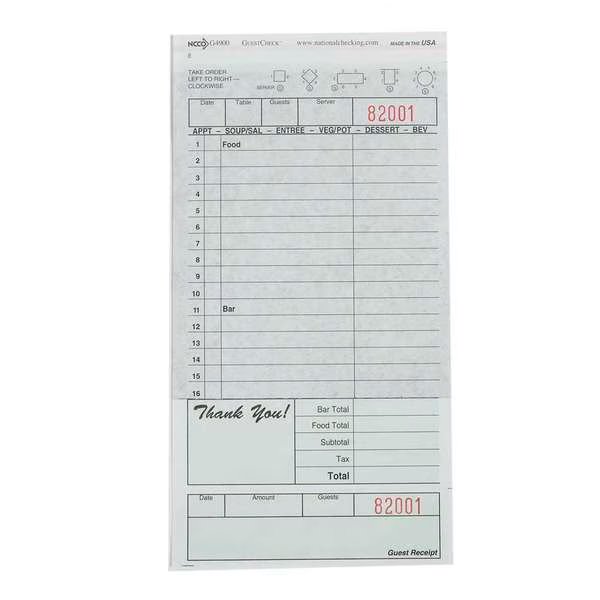 2 Part Carbon Green Tint 16 Line Guest Check 50 Checks, PK50, National Checking, Mfr#: G4900