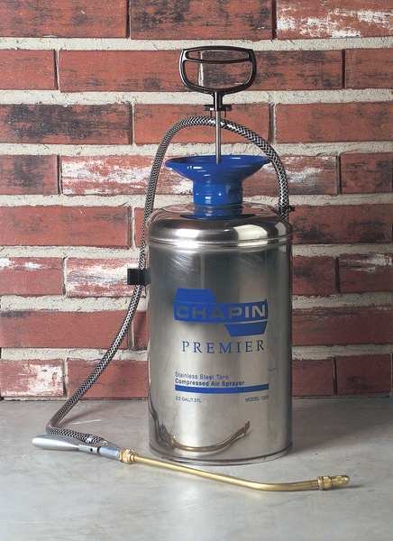 2 gal Handheld Sprayer, Stainless Steel, 42 in L Hose, Cone Nozzle Spray Pattern, Manual, Chapin, Mfr#: 1253