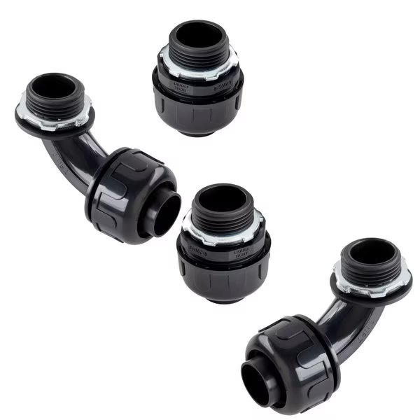 The liquid tight conduit comes with 4 free fittings, 2 straight and 2 angle This UL and CUL listed Black Flexible NonMetallic PVC Liquid Tight electrical conduit, commonly referred to as NM Liquid Tight, NonMetallic PVC, and PVC Electrical Conduit is perfect for use in multiple applications for electrical, telephone, cable, HVAC, Refrigeration, landscape lighting and more Manufactured with a strong yet flexible PVC covering that is smooth inside for easy wire pulling This UL and CUL listed Flexible Liquid Tight Electrical Conduit is perfect where the conditions of installation or operation require flexibility and protections from liquids, vapors, solids and the elements it is cold, heat and sunlight resistant Constructed of highquality materials, it is sunlight and liquid resistant It is lightweight and flexible, but it won't collapse, crimp or leak around curves It has a rigid PVC spiral which provides strength which is surrounded by a flexible PVC jacket for flexibility and waterresistance This conduit, when utilized with approved fittings, provides complete ground integrity It is specifically designed for use for machinery, air conditioning, heating applications and outdoor lighting It is used in industrial and commercial applications for conveyors, blowers, air conditioners, heaters, machine tooling and lubrication equipment, as well as for flexible connections for swimming pools, spas, hot tubs and pond and water garden motors and pumps