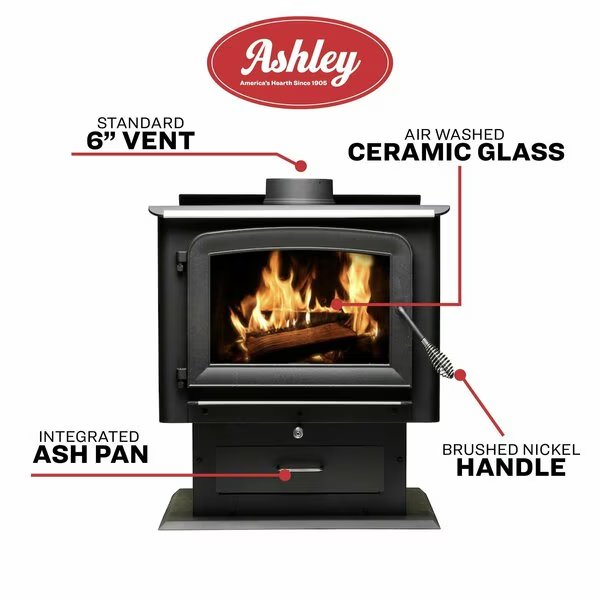 2,000 Sq Ft EPA Certified Pedestal Wood Stove, Ashley Hearth Products, Mfr#: AW2020E-P
