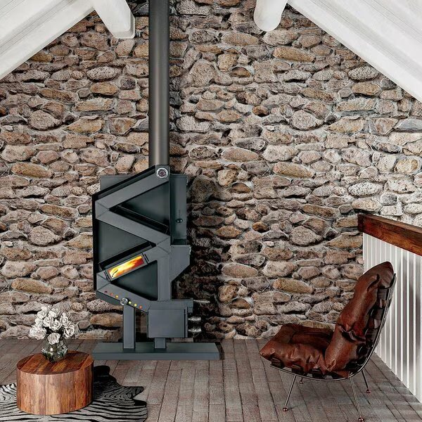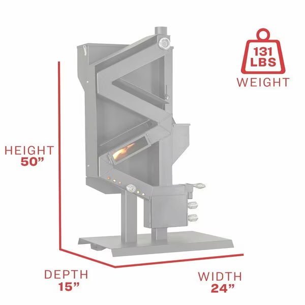 The GW1949 Wiseway from US Stove eliminates the need for electricity by utilizing a natural gravity feed system that eliminates all of the typical electrical and mechanical parts found in traditional pellet heaters. This patented revolutionary design is the only EPA certified and UL listed non-electric pellet stove on the market today. The Wiseway is simple to start and operate. Simply heat the burn chamber and flue with a propane torch and start the pellet flow. This stove uses a natural draft that will take over and ramp the stove up to temperature. Adjustments are simple by opening and closing fresh air intakes on the front of the stove. The window allows you to see the flame traveling up the body of the stove. Since it uses no electricity, heat is radiated off the 3.5 In. tubing and the steel baffles on the back. Best of all, this stove offers extremely small clearances on the rear and sides making it easy to install. Impressively, since it does not use any electricity this stove is the perfect source of heat for areas that are prone to blackouts or off the grid installations.