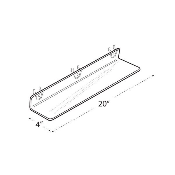 20"W x 4"D Clear Acrylic Shelf for Pegboard and Slatwall, PK4, Azar Displays, Mfr#: 556013