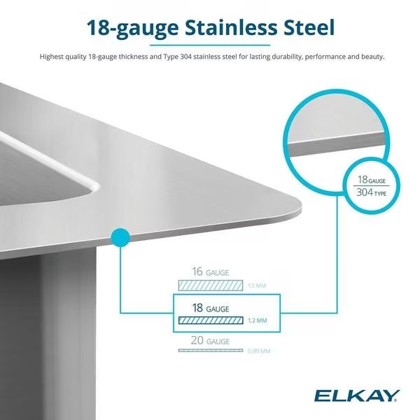 22 in W x 33 in L x 6 in H, Stainless Steel, Elkay, Mfr#: ECTSRAD33226TBG2