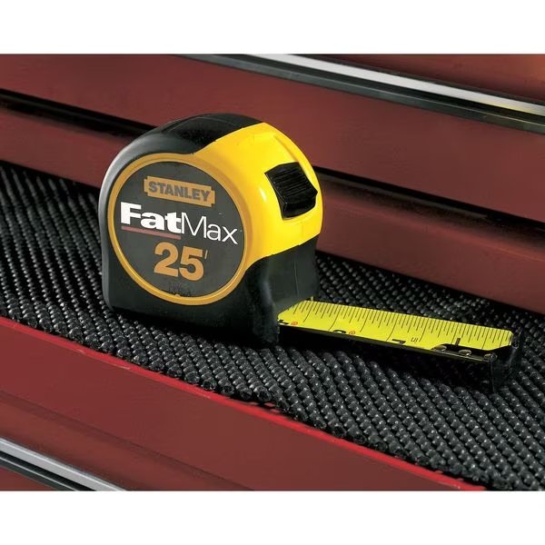 25 ft FATMAX Classic Tape Measure, 1-1/4 in Blade, Stud Markings, ABS Plastic Case, Rubber Grip, Stanley, Mfr#: 33-725