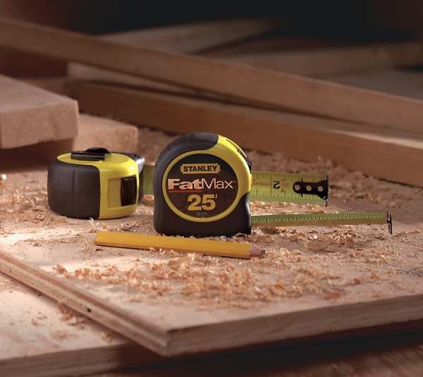 Tape Measure, Features 16 in and 19.2 in Stud Center Markings, Rubber Grip, Case Material ABS Plastic with Rubber Grip, System of Measurement SAE, Graduation Marks 1/16 in, Tip Style Nonmagnetic Single Hook, Zero Point Location Hook End, Blade Length - Metric Not Applicable, Blade Length - SAE 25 ft, Blade Material Steel, Blade Width 1 1/4 in, Blade Return Type Automatic, Case Color Black, Yellow, Case Length 7 in, Lock Type Toggle, Graduation Units Feet, Inches, Standout Length 11 ft