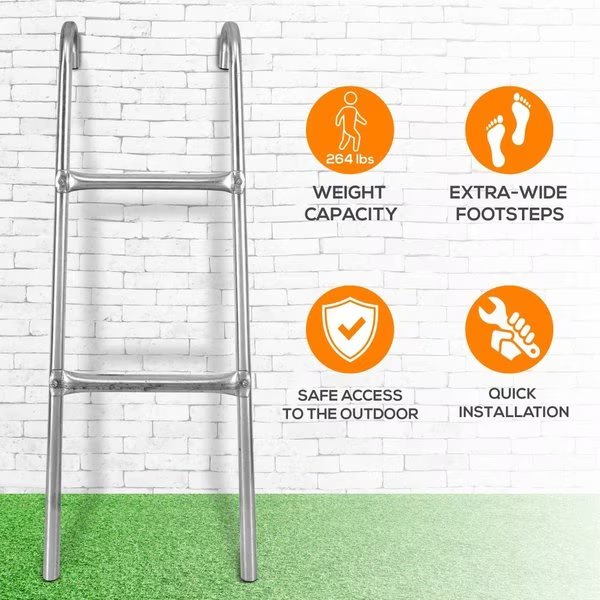 Features: - Quick Installation - Extra-Wide Footsteps - Conveniently Attached & Detaches - Allows for Safe Access to the Outdoor Trampoline - Weather Resistant Galvanized Steel - Works with SereneLife Backyard Outdoor Trampoline Models: SLTRA10BL, SLTRA10PNK What’s In The Box: - Trampoline Ladder - Installation Hardware Technical Specs: - Construction Material: Engineered Metal Alloy - Recommended Ages: Ages 6+ and Up - Weight Capacity: 264 lbs. - Hook Depth Size: 4.7’’ -inches - Total Ladder Size (L x W x H): 13.0’’ x 7.5’’ x 33.5’’ -inches