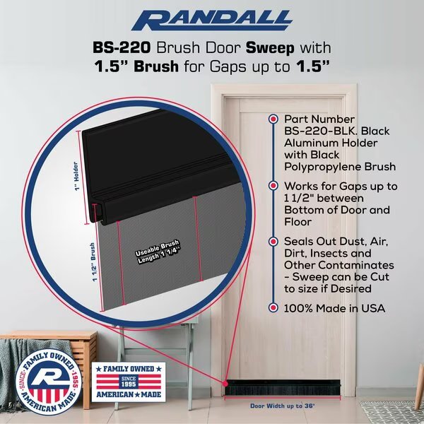 •Brush Sweep for Gaps Up to 1 1/2" between floor and door