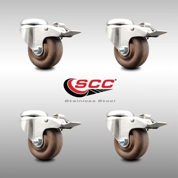 3 Inch 316SS High Temp Glass Filled Nylon Bolt Hole Caster Set with Lock Brake, Service Caster, Mfr#: SCC-SS316BHTTL20S314-GFNSHT-4