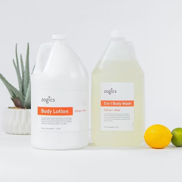 Getting a head-to-toe clean just got easier. Our plant-based shower gel triples as a luxurious body wash, hand soap, and shampoo. This 3-in-1 multitasking formula makes lathering up and stocking the bath a virtual breeze. Infused with essential oils, botanical extracts, and a citrus and aloe scent, this invigorating wash nourishes and hydrates skin and hair. We created our shower gel without parabens, phthalates, EDTA, or dyes, so it's gentle enough for everyday use. Zogics 3-in-1 Soap features a fresh Citrus + Aloe scent.