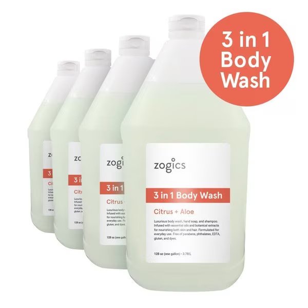3 in 1 Body Wash, Hand Soap and Shampoo, Citrus and Aloe, 4PK, Zogics, Mfr#: BWCA128-4