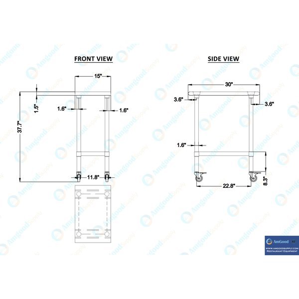 30x15 Rolling Prep Table with Stainless Steel Top, Amgood, Mfr#: AMG WT-3015-WHEELS