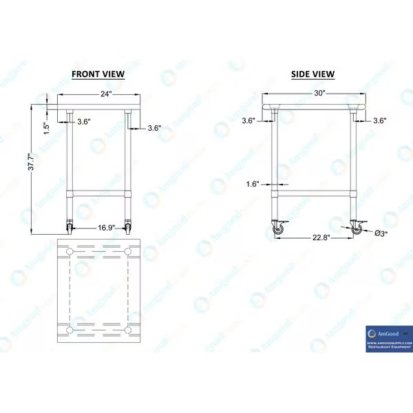 30x24 Rolling Prep Table with Stainless Steel Top, Amgood, Mfr#: AMG WT-3024-WHEELS