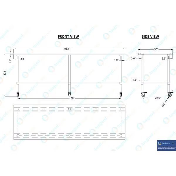 30x96 Rolling Prep Table with Stainless Steel Top, Amgood, Mfr#: AMG WT-3096-WHEELS