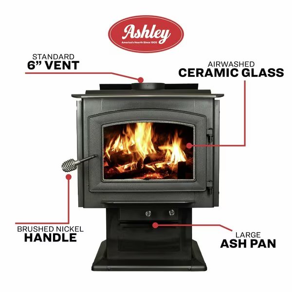 3,200 Sq Ft EPA Certified Large Pedestal Wood Stove, Ashley Hearth Products, Mfr#: AW3200E-P
