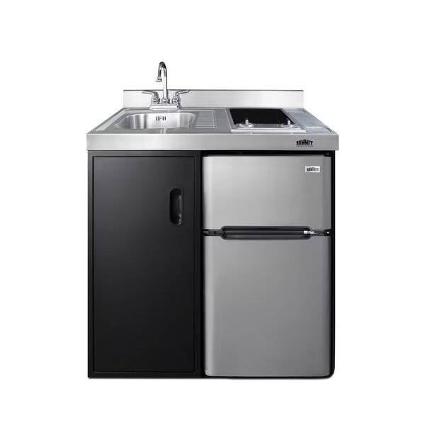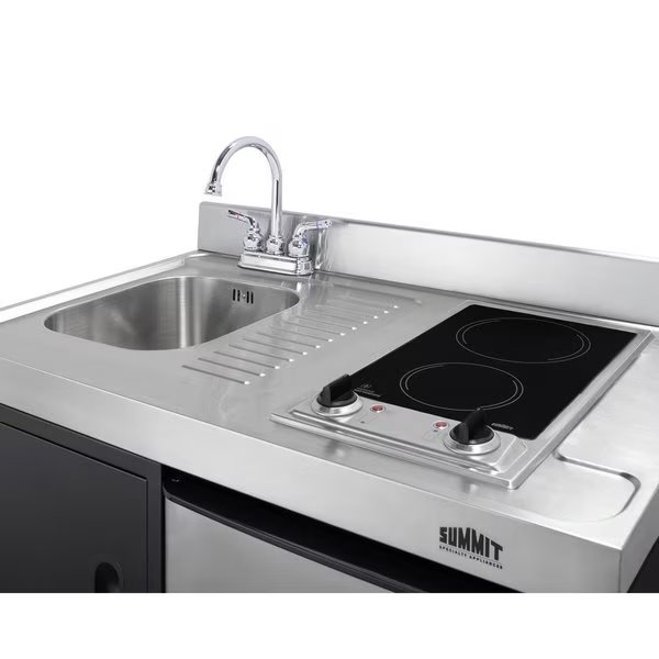 Summit brings true convenience to smaller spaces with all-in-one combination kitchenettes. Available in a variety of sizes and finishes, these units come fully featured with everything you need for the home foodservice experience, including a 2-burner smooth-top cooktop, sink, storage cabinet, and refrigerator with a freezer compartment.