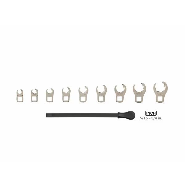 3/8 Inch Drive 6-Point Flare Nut Crowfoot Wrench Set with Key, 9-Piece (5/16-3/4 in.), Tekton, Mfr#: WCF91120