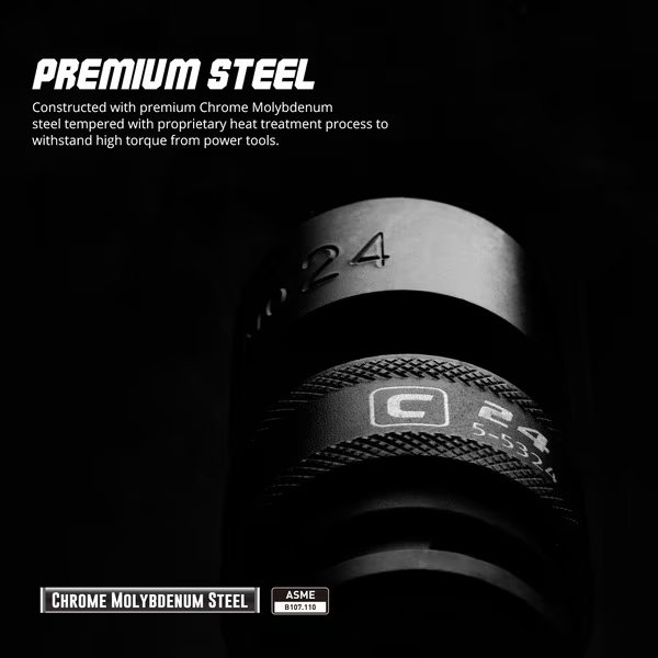 The Capri Tools 3/8 in. Drive Universal Impact Sockets rotate 360 degrees and give you ultimate accessibly to fasteners. We use premium Chrome Molybdenum steel tempered with our proprietary heat treatment process to make these impact sockets and accessories. They are durable and specifically made to withstand high torque from power tools. Each item is expertly coated with manganese phosphate, the preferred coating in military and aerospace, which offers superior protection and corrosion resistance compared to black oxide coating on other impact sockets. The 6-point WaveDrive design grips fasteners more tightly than traditional design, preventing fastener rounding and giving you more leverage. Meets and exceeds ASME B107.110 standards.