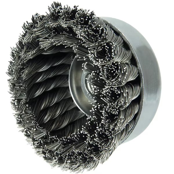 Weiler 4" Double Row Knot Wire Cup Brush features an nternal nut for use on dedicated equipment such as line traveling machines that clean and prep the O.D. of pipe prior to coating. 5/8"-11 nut for use on right angle grinders. Internal nut for use on dedicated equipment such as line traveling machines that clean and prep OD of pipe prior to coating. Suitable for right angle grinder. . . .