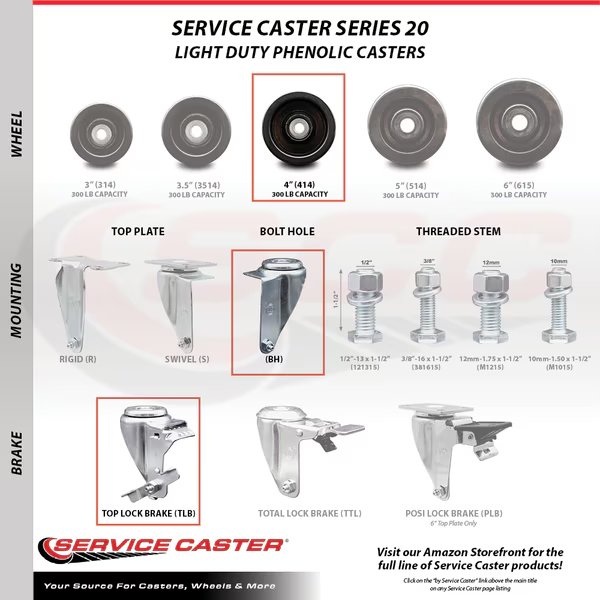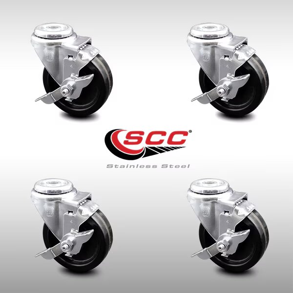 4 Inch SS Phenolic Wheel Swivel Bolt Hole Caster Set with Brake, Service Caster, Mfr#: SCC-SSBH20S414-PHS-TLB-4