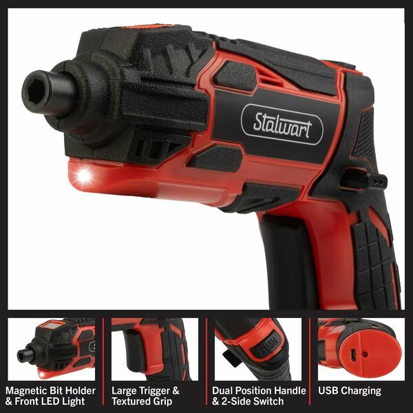45-Piece 4V Cordless Screwdriver Set, Red, Stalwart, Mfr#: 75-PT2001