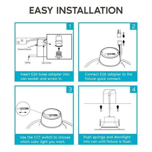 - •5 COLOR OPTIONS - Not sure what recessed lighting color temperature you are looking for in your home? Each 5 / 6 inch dimmable LED downlight has a simple to use switch on the back that can change your lights to 2700K warm white, 3000K soft white, 3500K natural white, 4000K cool white, or 5000K bright white. Your home ceiling can lights will be adjustable through 5 color temperatures until you find the perfect light to select for your space.