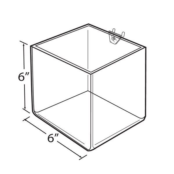6" Cube Bin for Pegboard or Slatwall, PK4, Azar Displays, Mfr#: 556109